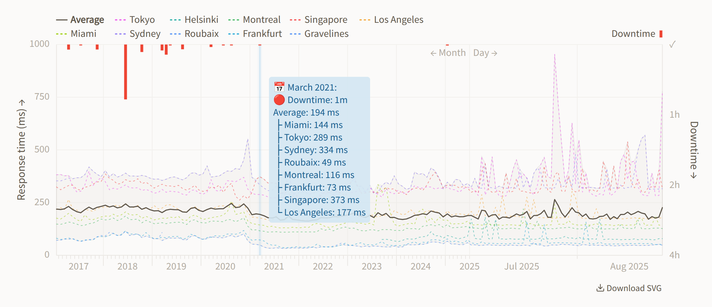 group=hostparameter) for a time period before and after your change for example, and then compare.This is now possible with the new 10y performance chart: https://headwayapp.co/updown-release-notes/new-10y-performance-history-chart-323596