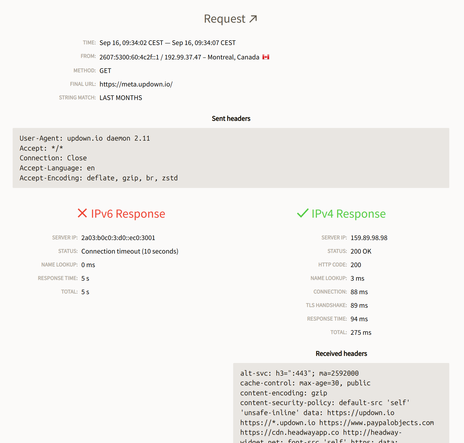 The dual stack results (IPv4 and IPv6) will NOT repeat "body" and "received_headers" if they are the same as in the parent result record, to save space.