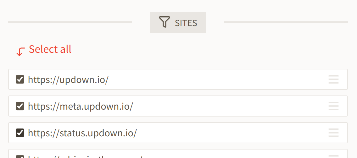 The order of sites in the status page can be modified as you wish with drag-and-drop (see other screenshot)